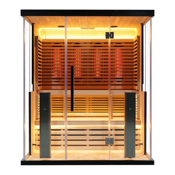 SAUNASNET® Luxury Glass Sauna with Full Spectrum,Lighting, Modern Wood Design, 2-3 Persons with WiFi Control Infrared 07