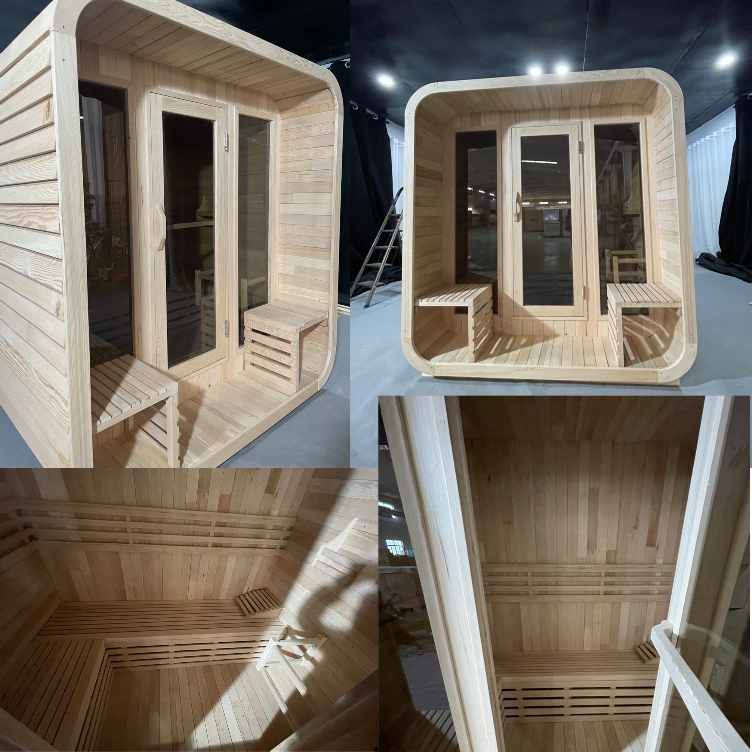 1.SAUNASNET Outdoor Square Wood Sauna Room