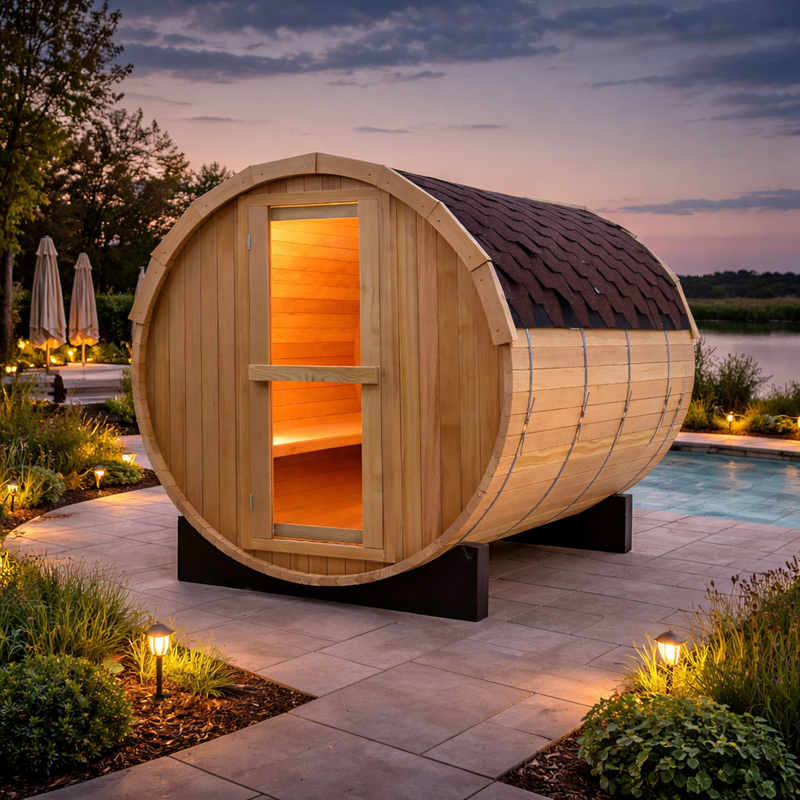 SAUNASNET® Outdoor Barrel Sauna for Relaxation, Detox, Stress Relief and Wellness with Wooden Design Barrel 02