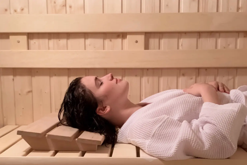 The enveloping heat, peaceful ambience, and restful setting of a sauna promotes relaxation. It's a perfect opportunity to unwind, rest your mind, breathe deeply, and generally slow down in a way that is healing and restorative. Moments of solitude paired with deep heat and your preferred therapeutic practices (i.e. medication, breath work, prayer) can work wonders on your physical and physiological well-being.