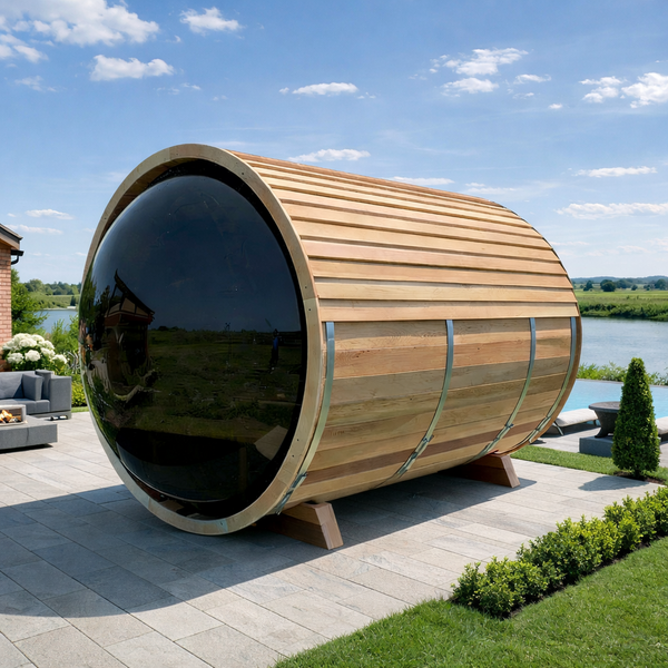 SAUNASNET® Compact Outdoor Barrel Sauna with Modern Glass Door Barrel 10(US Stock – Ships in 10–15 Days)
